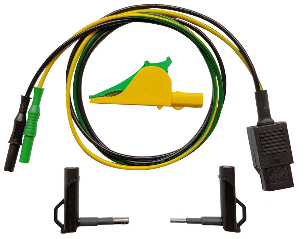 Das Zubehör-Set besteht aus schwarze und gelb/grüne Kabel inklusive Bananenstecker und Krokodilklemmen für den Anschluss des Trennfilters/Senders direkt an die Straßenbeleuchtung